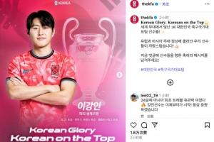 韩国足协再晒“韩国荣耀”主题海报,祝贺李刚仁随队夺欧冠冠军
