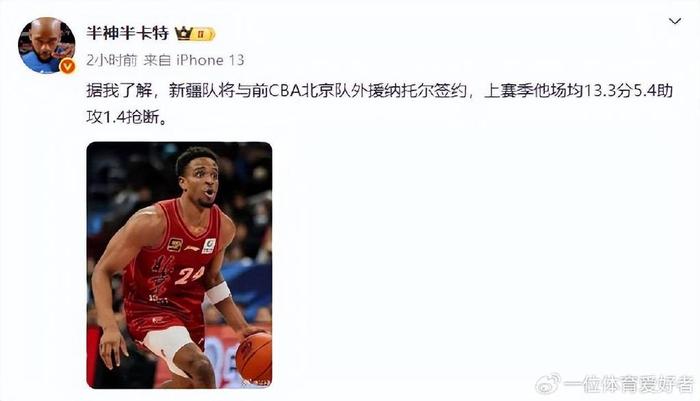 第三个消息,据知名媒体人半神半卡特透露,新疆队将和前北京首钢男篮外援扎卡里·纳托尔签约。